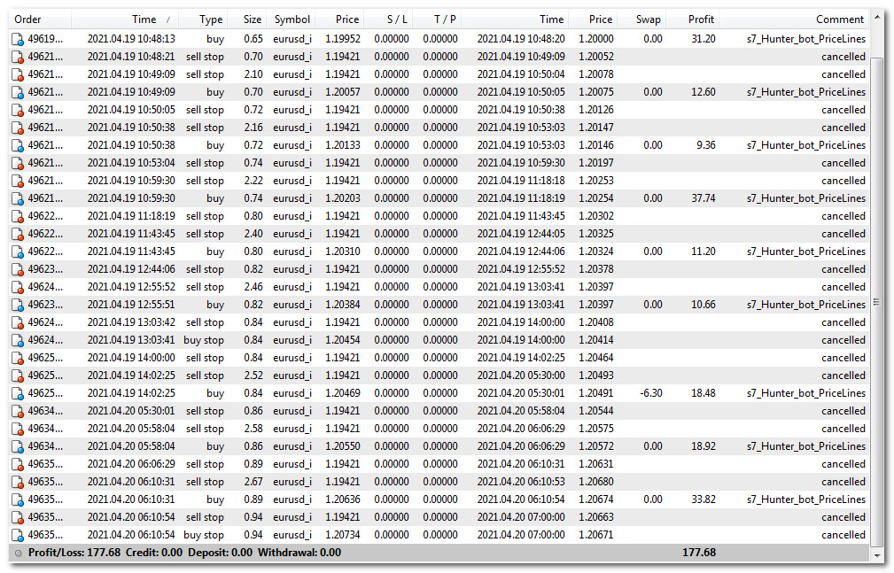 Hunter bot PriceLines Extra - EURUSD_iH1 - profit 20-04-2021: